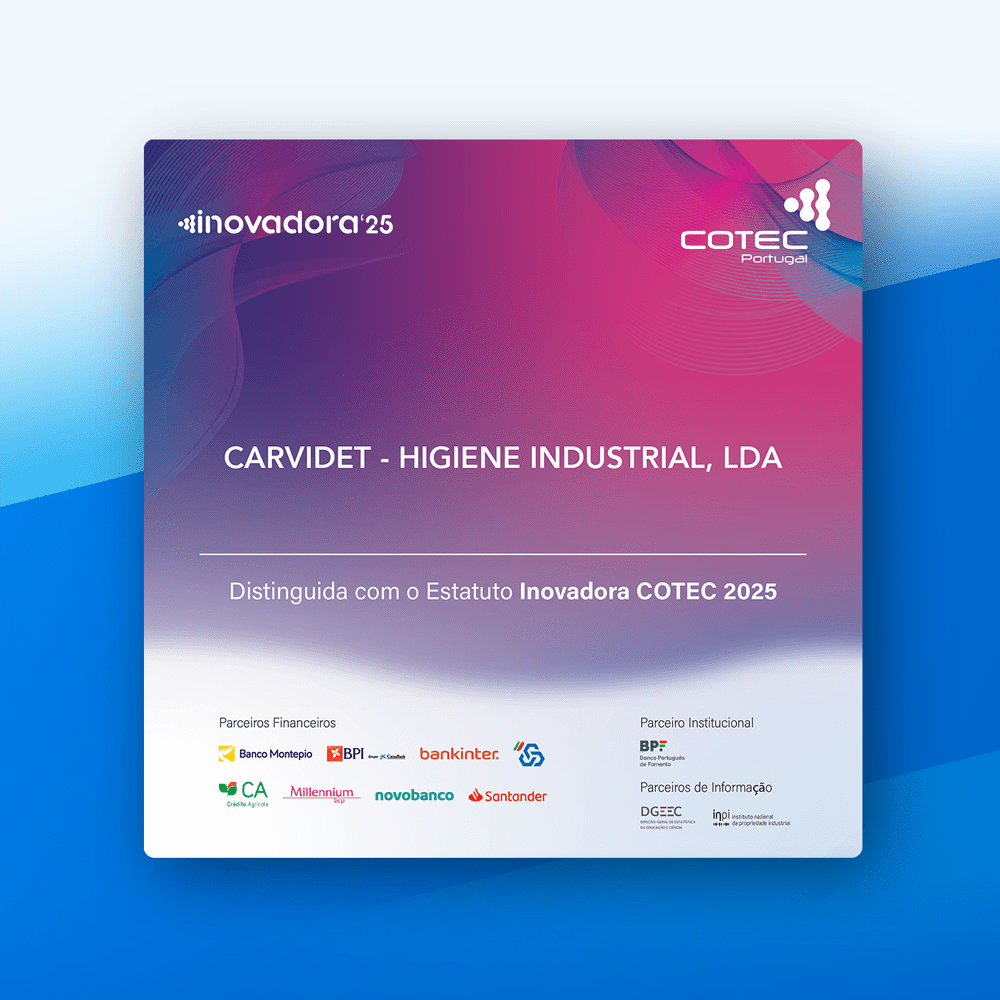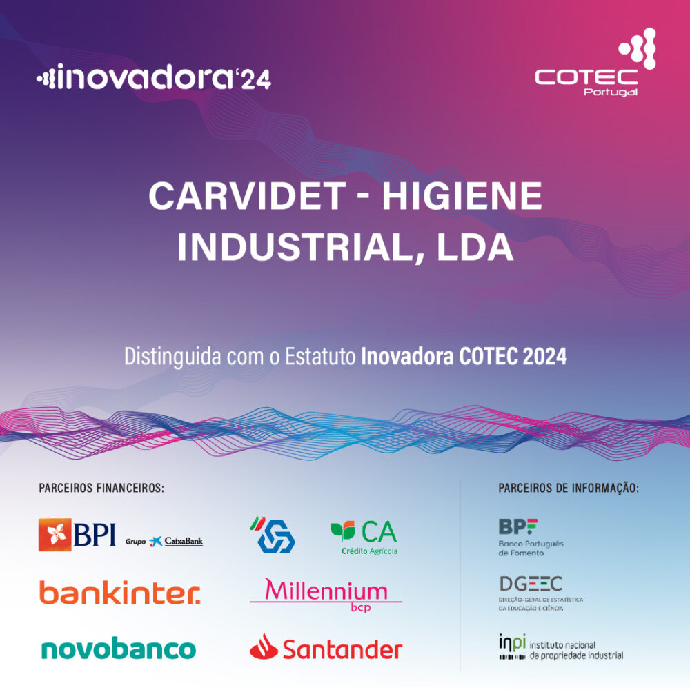 Pelo 4º ano consecutivo, a CARVIDET – Higiene Industrial, Lda. recebe em 2025 o estatuto de INOVADORA COTEC! Ler Mais >>