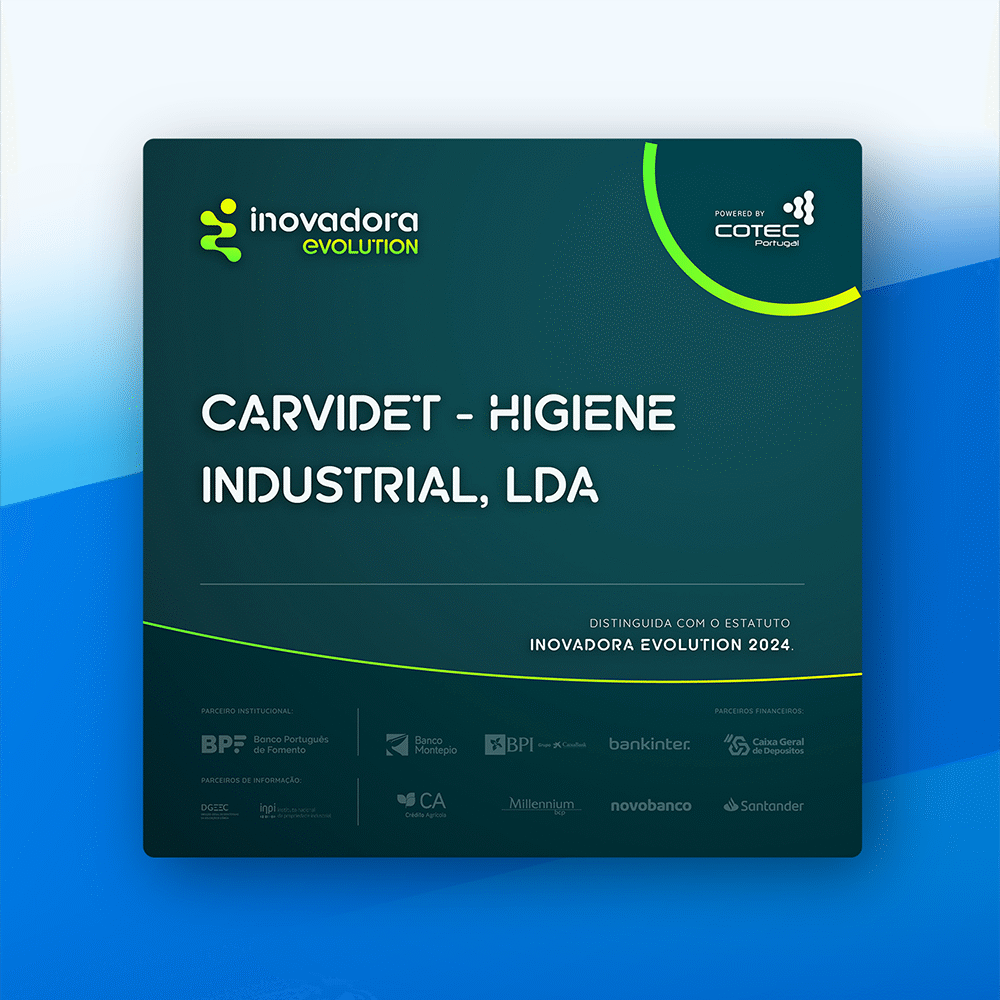 CARVIDET – Higiene Industrial, Lda. entre as 61 empresas distinguidas com o ESTATUTO INOVADORA EVOLUTION 2024! Ler Mais >>